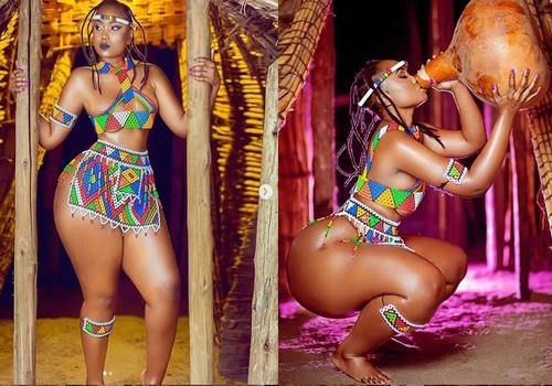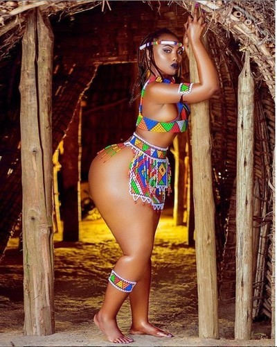 Endowed Tanzanian model, Sanchi took to Instagram to flaunt her enormous backside while posing in a revealing traditional attire made with beads and wrote: 'A Whole Continent and some part of Middle East.'