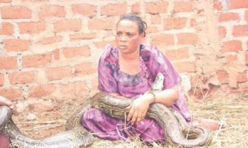 Woman caught breastfeeding a snake
